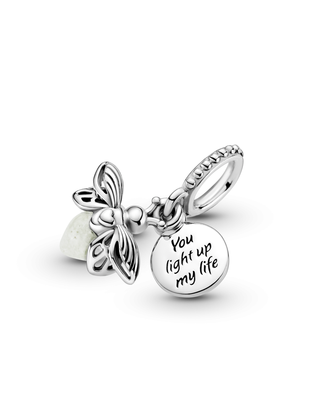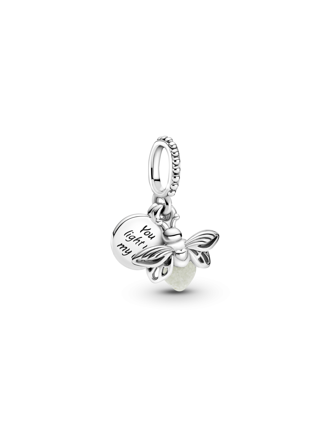 Charm colgante Luciérnaga Brillante Pandora en plata de primera ley, adornado con cristal verde fotoluminiscente.